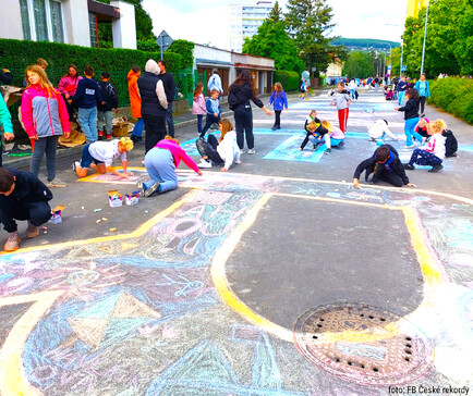 Celý týden vyvrcholil v pátek rekordním nápisem o délce úctyhodných 219,5 metru, který se zapsal do České knihy rekordů jako nejdelší souvislý křídový nápis na vozovce.