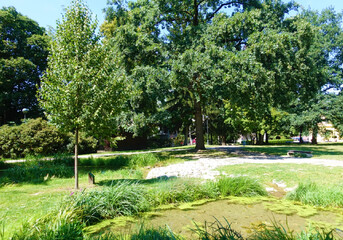 Vodní prvky do parku vnáší další okrasný prvek, a zároveň pomáhají zadržovat vodu v krajině...